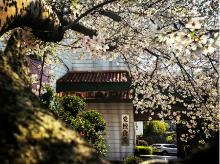 春分時(shí)節(jié),益陽(yáng)市委黨校四株樹齡逾五十載的八重櫻次第綻放,如煙似霧的粉白云霞籠罩著青磚黛瓦,將這座紅色學(xué)府裝點(diǎn)成令人流連的春日勝境。承載著兩代人記憶的古櫻樹下,市民與學(xué)員共赴這場(chǎng)穿越時(shí)光的春之邀約。