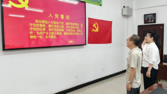 會(huì)議最后進(jìn)行預(yù)備黨員接收。書(shū)記劉倩宣讀《中國(guó)共產(chǎn)黨發(fā)展黨員工作細(xì)則》相關(guān)規(guī)定和介紹黨員發(fā)展程序。隨后,發(fā)展對(duì)象龔晴同志匯報(bào)個(gè)人情況、入黨動(dòng)機(jī)、對(duì)黨的認(rèn)識(shí)等;入黨介紹人介紹培養(yǎng)考察情況;支部委員陳正龍代表支部匯報(bào)支部綜合審查結(jié)果。經(jīng)與會(huì)正式黨員投票,一致同意接收龔晴同志為中共預(yù)備黨員,并現(xiàn)場(chǎng)進(jìn)行了入黨宣誓。