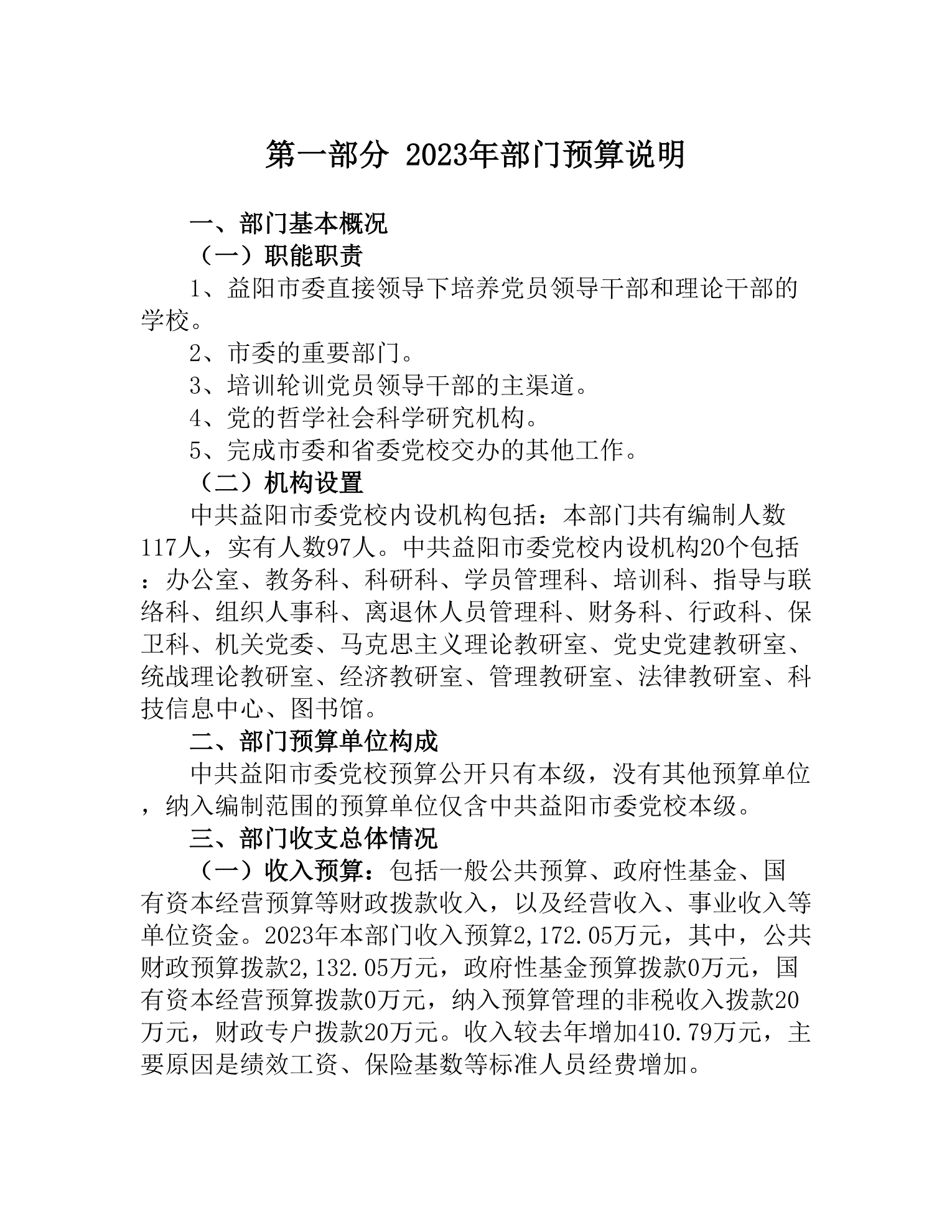 中共益陽(yáng)市委黨校2023年部門預(yù)算公開(kāi)說(shuō)明