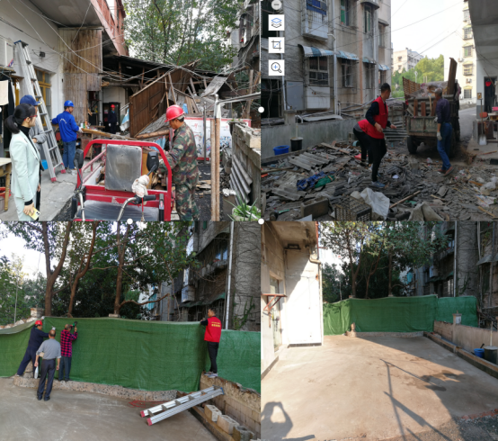 “位于虎形山社區(qū)秀峰西路254號的建筑預制場家屬區(qū)內,有一個近百平方的棚子因年久失修,前不久已倒塌一部分,存在極大的安全隱患。因社區(qū)經費缺口大,無力承擔,特請求黨校能伸出援助之手,幫忙解決。”社區(qū)書記成雅婷這樣介紹到。根據(jù)社區(qū)需求,市委黨校于11月8日至10日組織人力物力對虎形山社區(qū)轄區(qū)內一處違建倒塌木棚進行拆除、清理、裝車、清掃、電線整理。經過三天的努力,拆除近百平方的木棚,清運木頭、碎瓦共計10車,鋪蓋綠草裝飾30平方,終于安全、順利、圓滿的完成了這項工作,消除了安全隱患,改善了家屬區(qū)的人居環(huán)境,得到社區(qū)工作人員以及家屬區(qū)同志的一致好評!