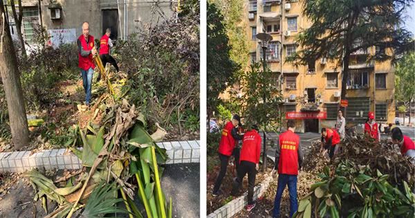 志愿者們對原資陽黨校院內(nèi)殘枝落葉進(jìn)行清理,大家團(tuán)結(jié)協(xié)作、齊心協(xié)力,場面異常火熱。